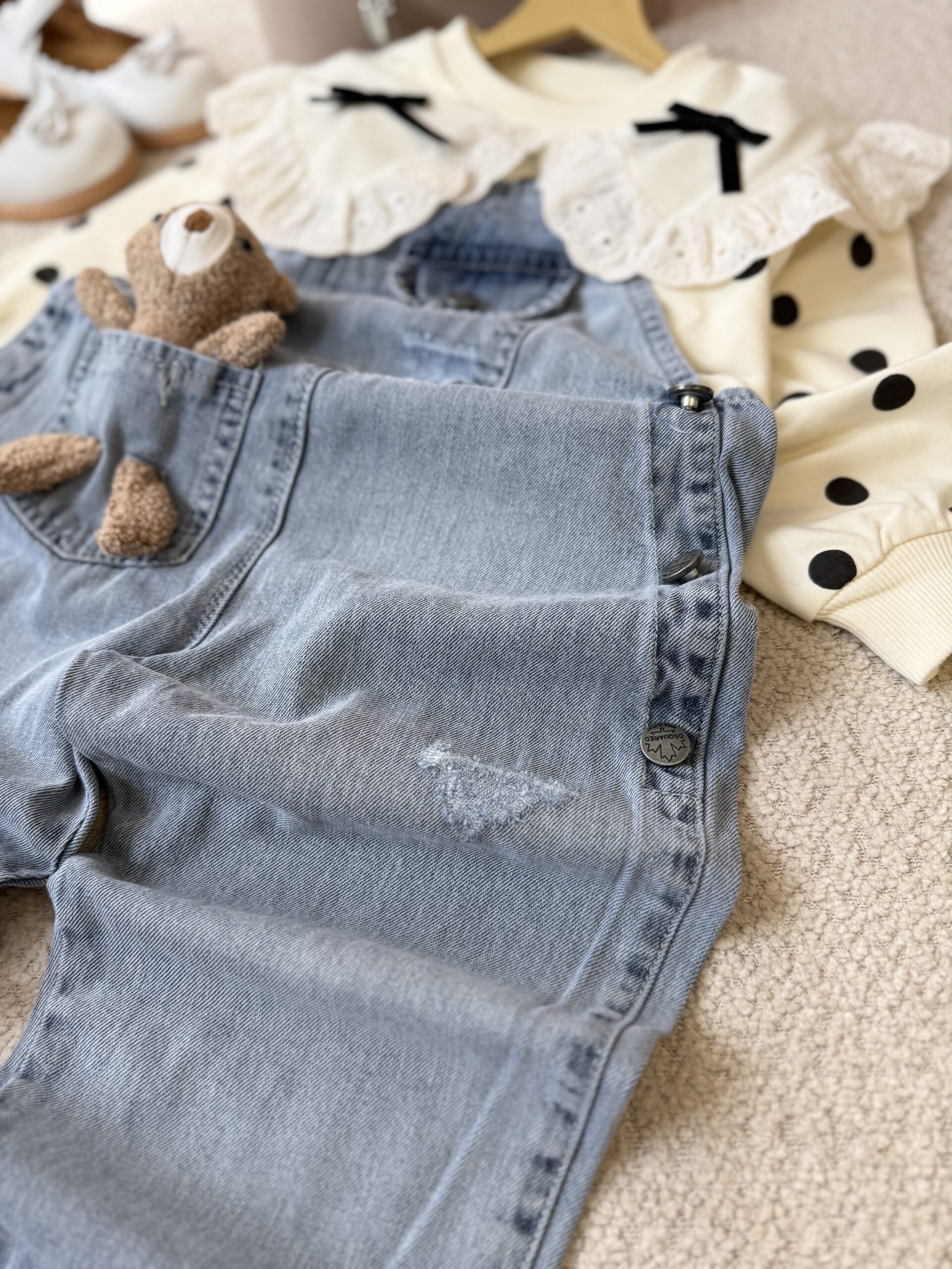 بیلر تک اسپرت خرس دارکمی بالاتر یه نوار باریک هست که علامت متر داره! کلیک کنید جدول سایز باز میشه-جنس جین بهاره(نه نازک و کاغذیه !نه ضخیم -نرم و راحت🤌)مناسب دختر و پسر