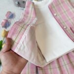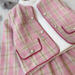 سه تیکه کت دامن صورتی💗کمی بالاتر یه نوار باریک هست که علامت متر داره-ضربه بزنید جدول سایز باز بشه-سه تیکه شامل(کت-دامن-کراپ) کت آستردوزی شده-جنس کشمیر