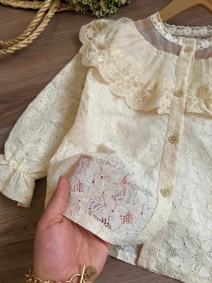 شومیز تمام دانتل شیریجنس دانتل(آستری دارد)کمی بالاتر یه نوار هست که روش عکس متره! ضربه بزنید جدول سایز باز میشه