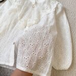 شومیز خامه دوزی دیبا ارسال پنج روزهجنس خامه دوزی با ترکیب تور و دانتل- کمی بالاتر یه نوار باریک هست که روش علامت متر داره-کلیک کنید جدول سایزش باز بشه